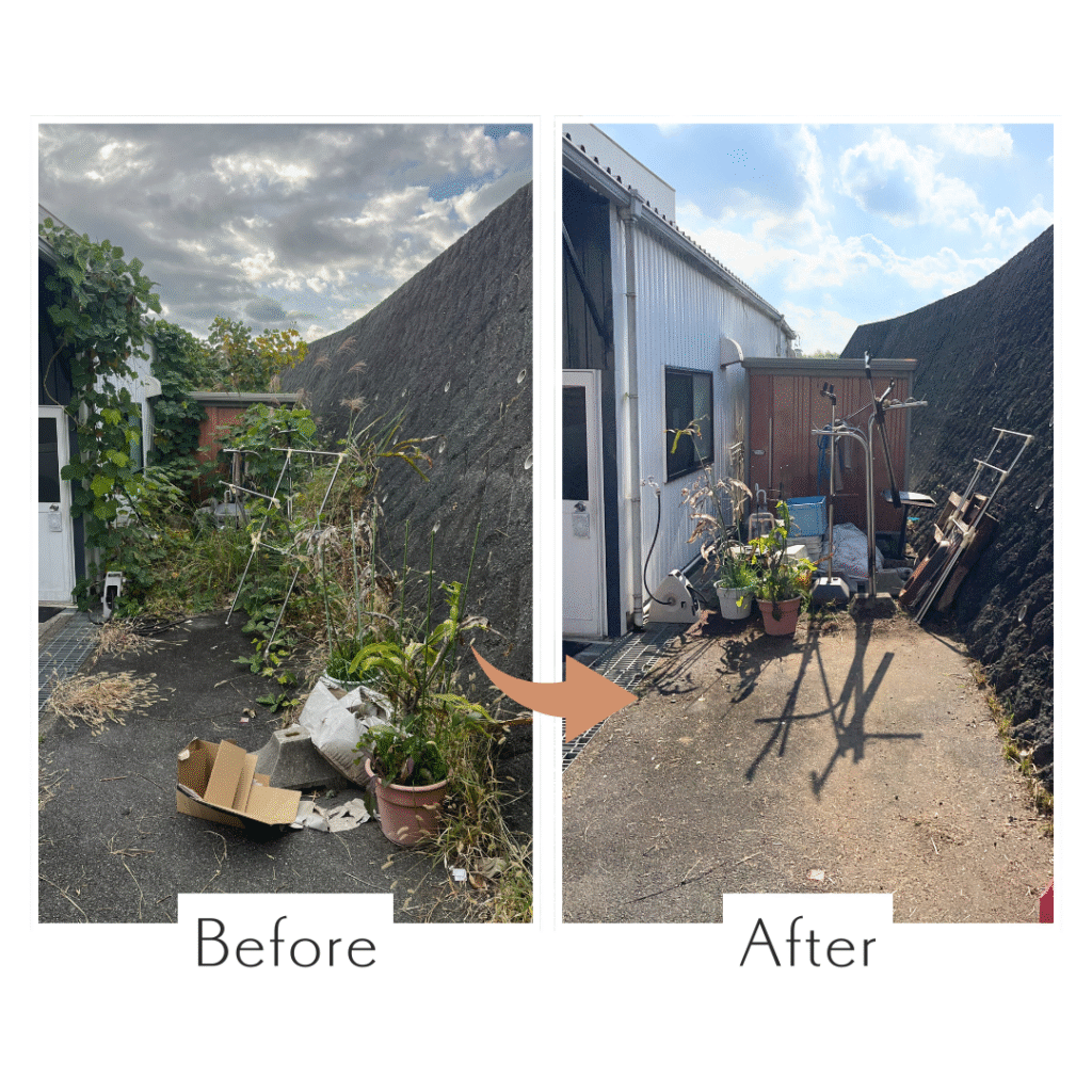 上牧町内にて 店舗横の物置き場の草刈り作業 をご依頼いただきました。