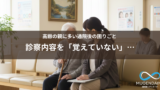 日本の病院の待合室で、高齢者と付き添いの家族が横並びに座り、静かに診察の順番を待っている様子 コラム